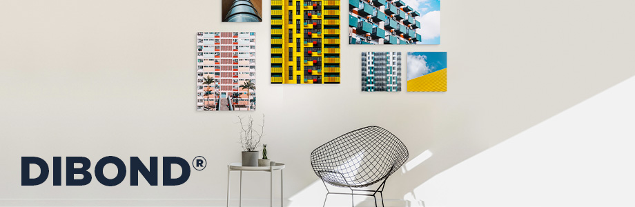 Le « Dibond » alu composite blanc est le produit référence dans le domaine de la création d'enseignes intérieures et extérieures car il a l'avantage d'être une matière légère, extrêmement rigide et stable. Il était à l'origine principalement utilisé dans le monde de la publicité. Mais son utilisation s’est très vite démocratisée dans le monde de la photo jusqu'à devenir un support utilisé aussi bien pour des expositions qu'en décoration d'intérieur. Il résiste aux intempéries, au vent et au changement de température.